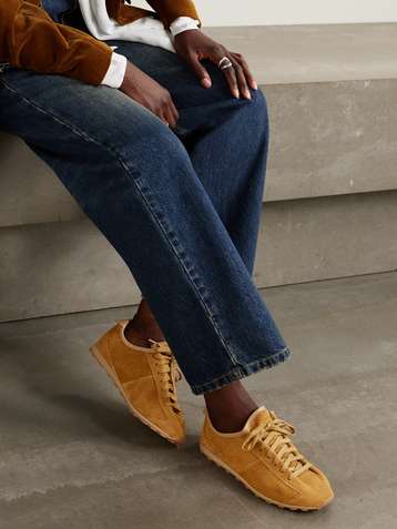 Drawing on retro athletic codes with her signature sophistication, Wales Bonner reimagines the classic sneaker through a refined, textural lens. This low-profile design is crafted in Italy from a harmonious blend of plush suede and glossy, beige lizard-effect calf leather—offset by light-brown leather accents that add depth and warmth.